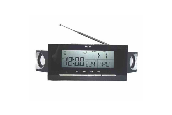 Электронные часы-будильник с FM-радио, календарь, электронный термометр, LED-экран с подсветкой, пульт управления. Воспроизводит аудио файлы с внешних карт памяти форматов SD и USB.