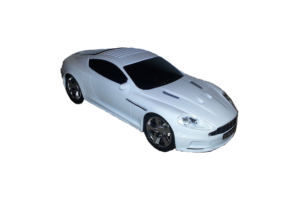Портативная стереоколонка - MP3 плеер машинка №024 "ASTON MARTIN" 2 динамика (LCD,FM,USB,TF) белая (