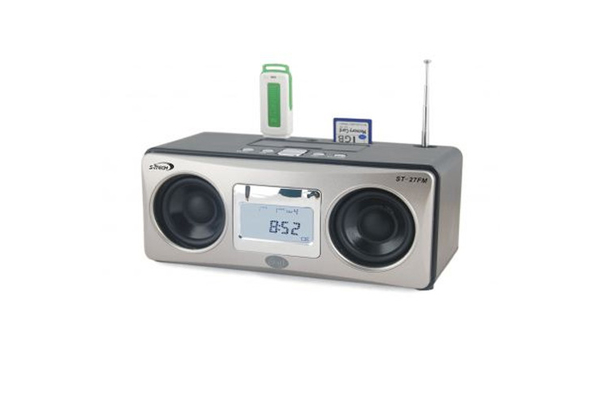 Модные стерео колонки ST-27FM предназначены для прослушивания музыки с мобильного телефона, MP3/ MP4 плеера и других устройств с выходом 3,5 мм. Качественный звук не оставит равнодушным любого меломана. Портативное устройство так же поддерживает USB-Flash носители и карты памяти SD/ММС. ST-27FM имеют встроенные FM-станции, часы, будильник, календарь. На ЖК-экране отображен также индикатор зарядки. В комплекте идут: полноценный пульт с управлением всех функции, а так же три переходника для телефонов. Внутренний элемент питания - сменный аккумулятор BL-5С Li-ion 800 мА. Легкие, практичные, ST-27FM можно всегда носить с собой.