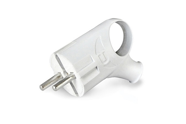 Вилка с заземлением, угловая, 16А, с ушком, белая, UNIVERSAL, (А112), Китай