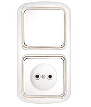 Блок розетка+выключатель одноклавишный С/У, Б/З, В-РЦ-533, бел/зол, Bylectrica, Гармония, Беларусь