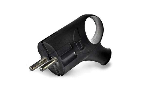 Вилка с заземлением, угловая, 16А, с ушком, чёрная, UNIVERSAL, (А0112),Китай