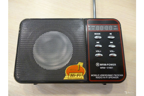 Портативная стереоколонка - MP3 плеер MRM-31661черный (micro SD, USB, AUX, FM, аккум BL-5C) (``)