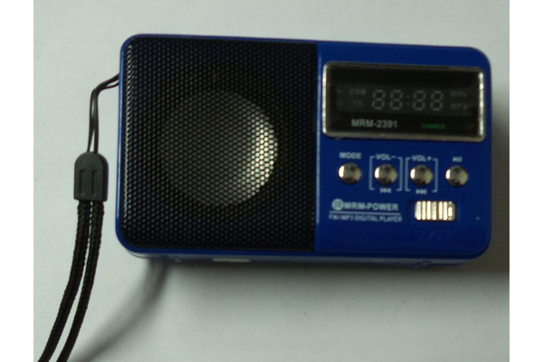 Портативная стереоколонка - MP3 плеер MRM-2391голубой (micro SD, USB, AUX,Phone, FM, аккум BL-5C кре