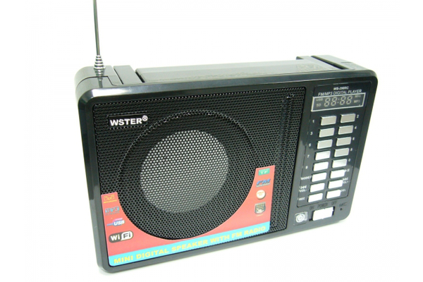 Портативная стереоколонка - MP3 плеер WS-298 (TF,SD,USB,6W,FM,аккум 3*AA, запись, пульт ДУ)