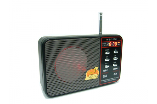 Портативная стереоколонка - MP3 плеер WS-3166 (TF,SD,USB,3W,FM,аккум BL-5C) (О`)