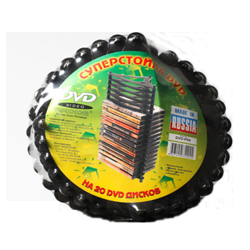 Вертикальная стойка для хранения 20 DVD -дисков. Изготовлена из ударопрочного полистерола. Прочная, собирающаяся из отдельных элементов, конструкция. Стойка упакована в картонную цветную суперобложку, содержащую информацию об изделии. Стойка находится в собранном виде.