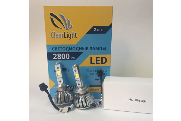 Автолампа-светодиодная ClearLight H7 12V 2 диода СОВ белая 5000К 30Вт 3000LM (2шт.) CLFLXLEDH7