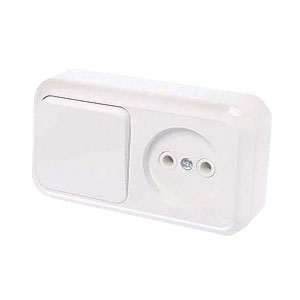Блок розетка+выключатель одноклавишный О/У, Б/З, белый, В-РЦ-521, Bylectrica, Пралеска, Беларусь