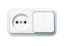 Блок розетка+выключатель двухклавишный О/У, Б/З, белый, 2В-РЦ-523, Bylectrica, Пралеска, Беларусь