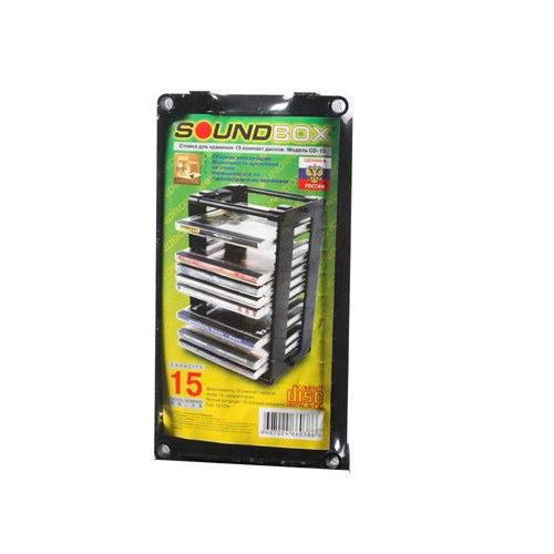 Вертикальная стойка для хранения 15 компакт-дисков. Изготовлена из ударопрочного полистерола. Прочная, сборная конструкция. Предусмотрена возможность крепления на вертикальных поверхностях. Наращивается по горизонтали и вертикали. Стойка упакована в термоусадочную плёнку, с вложенной красочной полноцветной этикеткой, содержащей всю информацию об изделии. Стойка находится в разобранном виде.