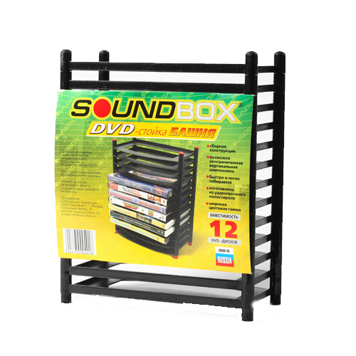 Вертикальная стойка для хранения 13 DVD -дисков. Изготовлена из ударопрочного полистерола. Прочная, собирающаяся из отдельных элементов, конструкция. Стойка упакована в картонную цветную суперобложку, содержащую информацию об изделии. Стойка находится в собранном виде.