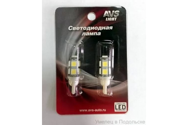 _Автолампа-светодиодная AVS Light T028 T10 (W2, 1*9.5d) 9SMD 5050 3chip W5W (белый) 2шт (Китай)