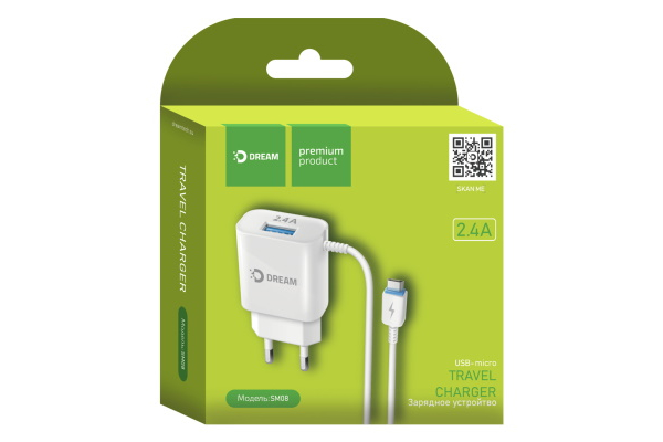 СЗУ на microUSB Dream SM08 + гнездо USB, белый