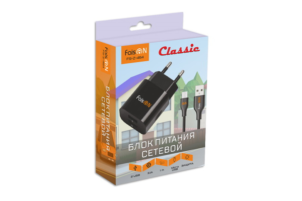 СЗУ на 2 USB FaisON FS-Z-464 Classic (3100mA) + кабель microUSB, черный