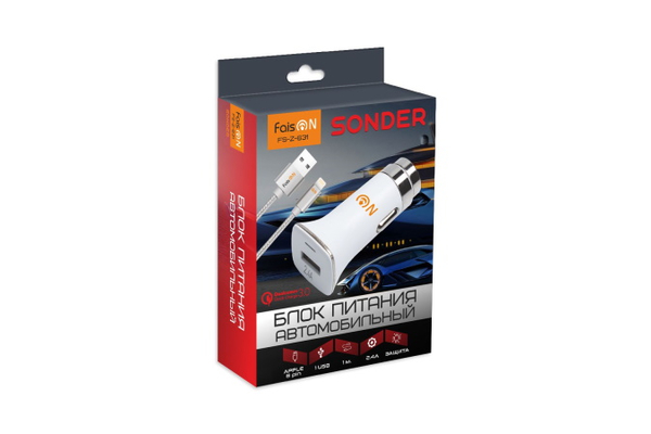 АЗУ с USB портом FaisON FS-Z-631 + кабель Lightning (2400mA, QC3.0) белый