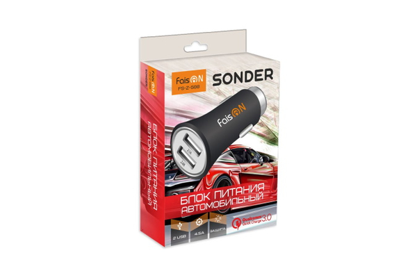 АЗУ на 2 USB FaisON FS-Z-588 (4500mA, QC3.0) черный