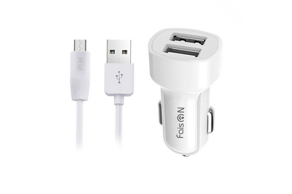 АЗУ на 2 USB FaisON HZ2A + кабель microUSB (3400mA) белый