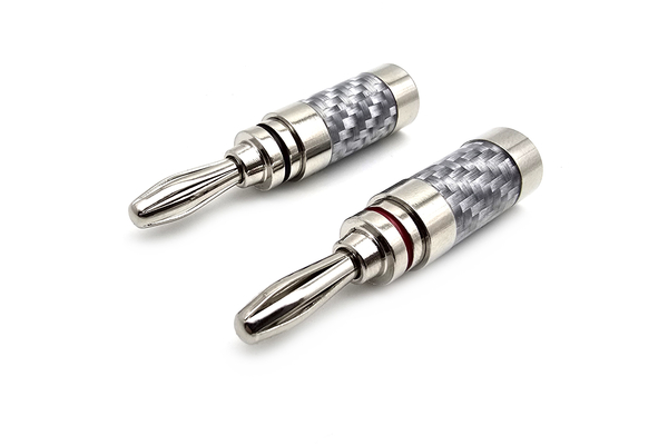 Штекер акустический BANANA, L=28мм,карбон, крепление на винт, серебро, красная полоска B28P-BR