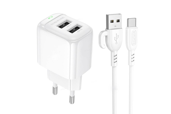 СЗУ на 2 USB Borofone BAS41A Potential + кабель USB - Type-C, белый