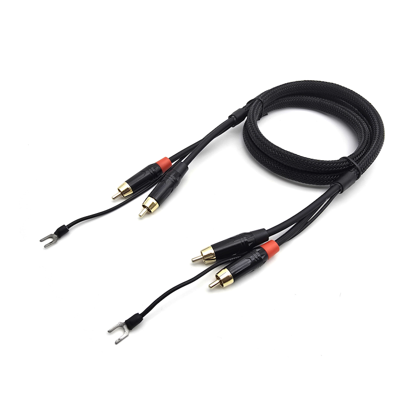 Фонокабель, для подключения тонарма, 2RCA - 2RCA + заземляющий кабель, в оплетке, длина 1м, ART-06