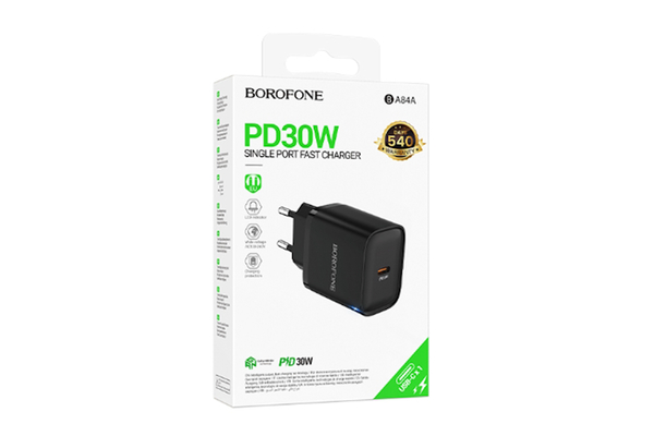 СЗУ на PD (гнездо Type-C) BOROFONE BA84A , QC3.0, PD30Вт, чёрный