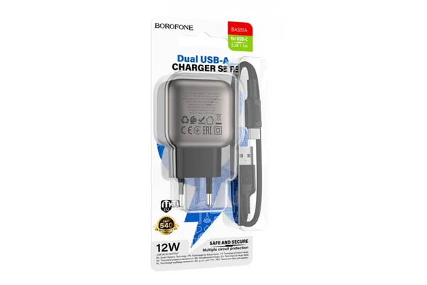 СЗУ на 2 USB BOROFONE BAS51A + кабель Type-C . чёрный