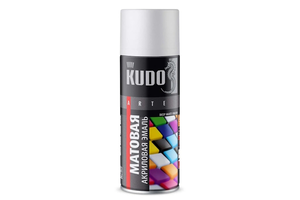 Краска-спрей (эмаль) универсальная, белая матовая, акриловая 520мл, аэрозоль, RAL9003, Kudo