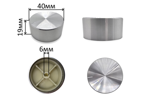 Ручка для регулировки громкости, селектора D=40мм, H=19мм, алюминиевая, серебро, тип 2