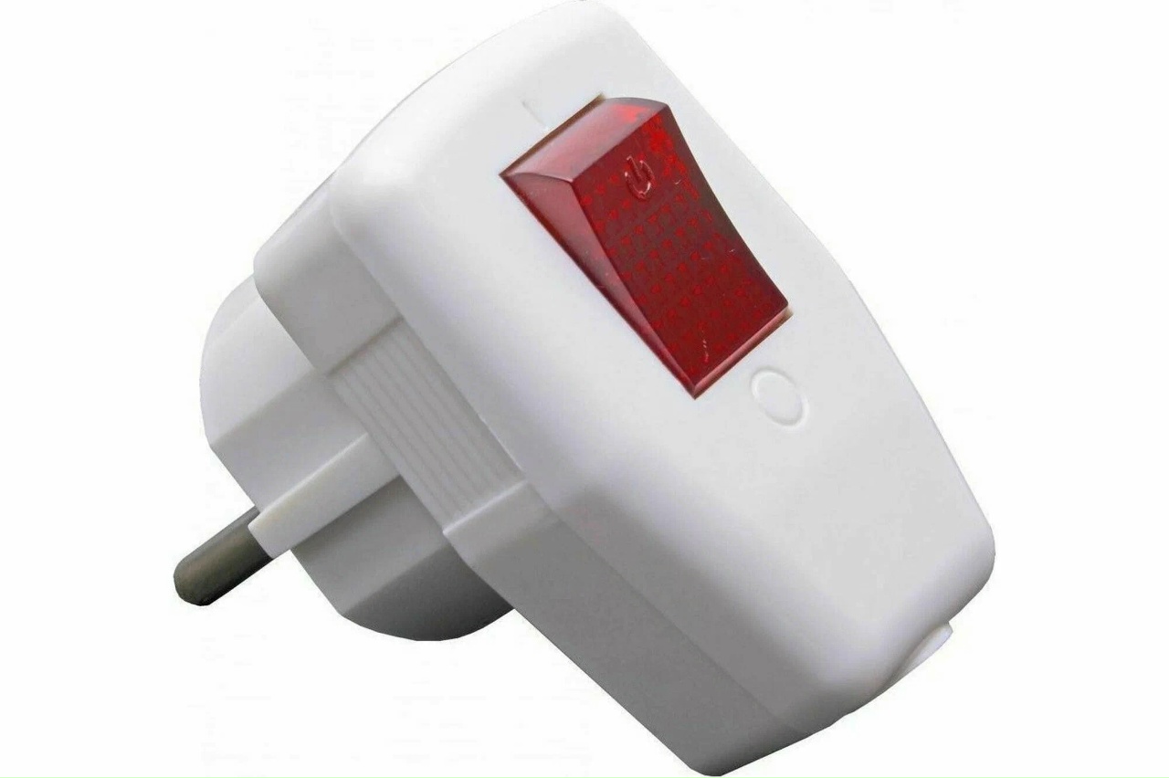 Вилка 16А 250В (АБС-пластик, угловая с кнопкой (с выключателем), белая, земля General 470516