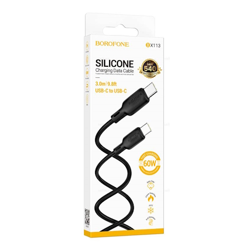 Кабель Type-C - Type-C Borofone BX113, 3м, силикон, 3.0A, чёрный