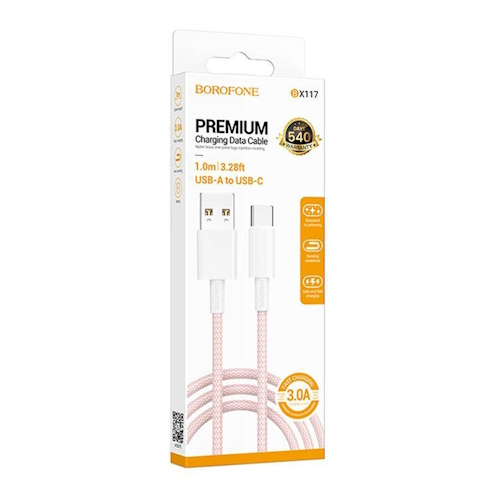 Кабель USB - Type-C Borofone BX117, 1м, розовый