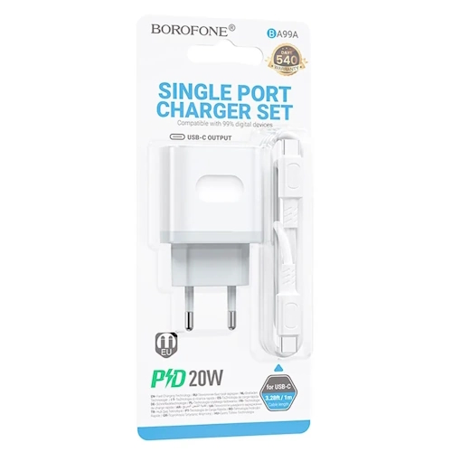 СЗУ на PD BOROFONE BA99A PD20Вт + кабель Type-C - Type-C белый