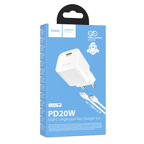 СЗУ на PD HOCO N64 QC3.0, PD20Вт + кабель Type-C - Lightning белый