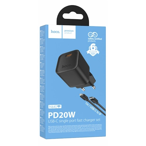 СЗУ на PD HOCO N64 QC3.0, PD20Вт + кабель Type-C - Lightning черный