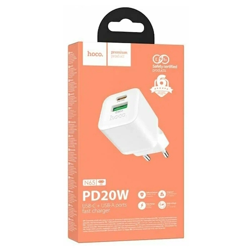 СЗУ на PD (гнездо Type-C) + USB HOCO N65, PD20ВТ, QC3.0A белый