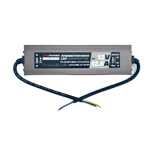 Блок питания для LED ленты 12V 150W 12.5A IP67 MG-12150