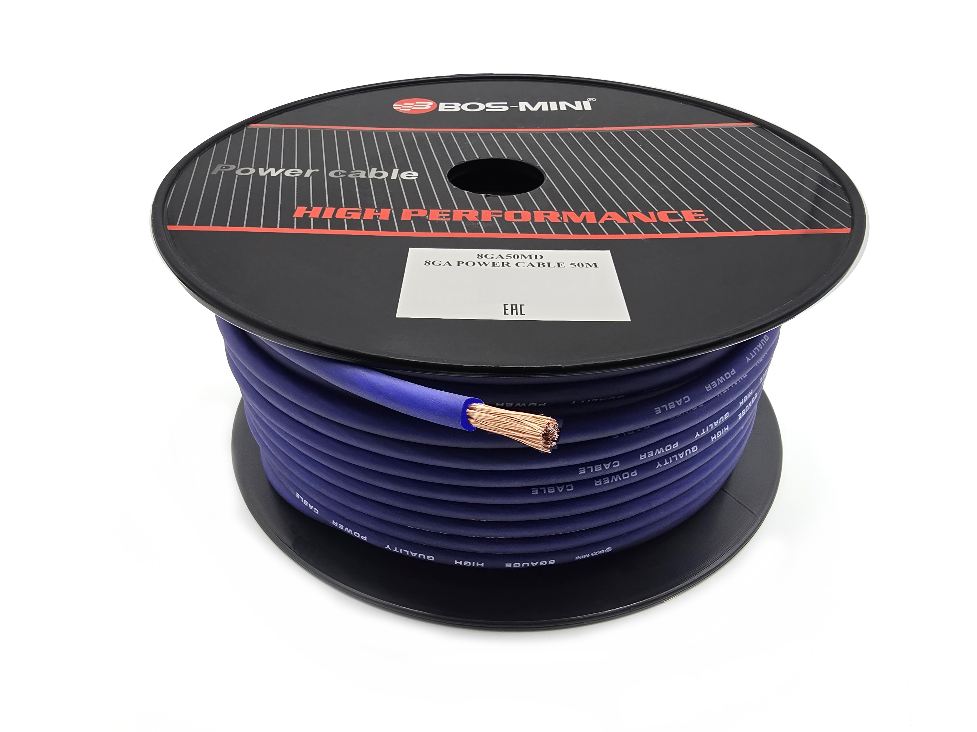 Кабель силовой на катушке BOS-MINI 8GA 50м