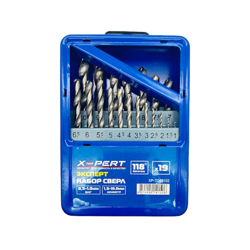 Набор свёрл по металлу X-PERT, Ø1-10mm, с шагом 0,5-1mm, 19шт в желез.кейсе, (синий) XP-TD18102