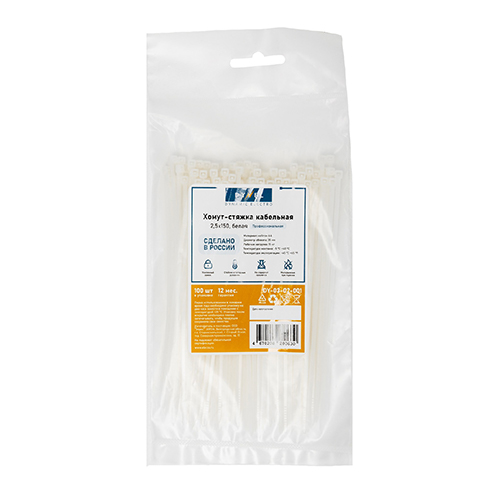 Стяжка нейлон (хомут) 2,5*150мм (белый) (100шт/уп) DYNEL DY-03-02-001