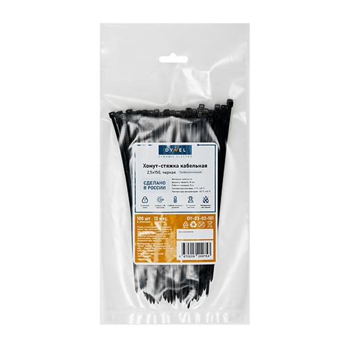 Стяжка нейлон (хомут) 2,5*150мм (черный) (100шт/уп) DYNEL DY-03-02-101