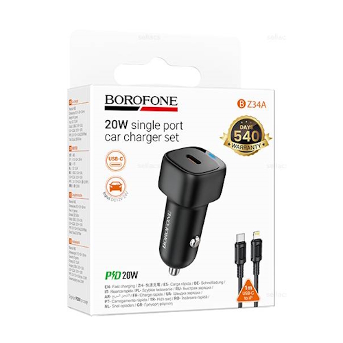 АЗУ на PD Borofone BZ34A QC3.0 + кабель Type-C - Lightning, чёрный