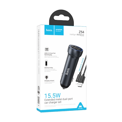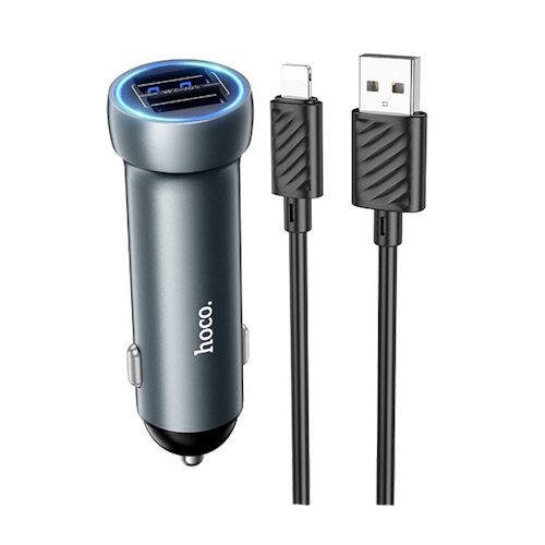 АЗУ на 2 USB HOCO Z54 3000mA QC3.0, + кабель Lightning, серый