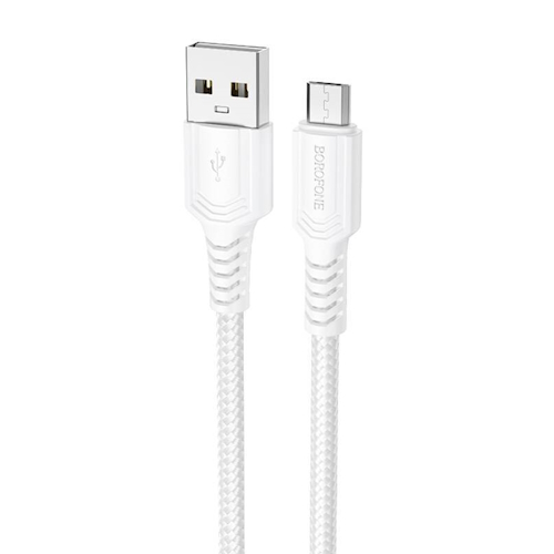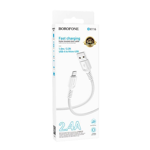 Кабель USB - MicroUSB Borofone BX116, 1м, 2,4A, ткань белый