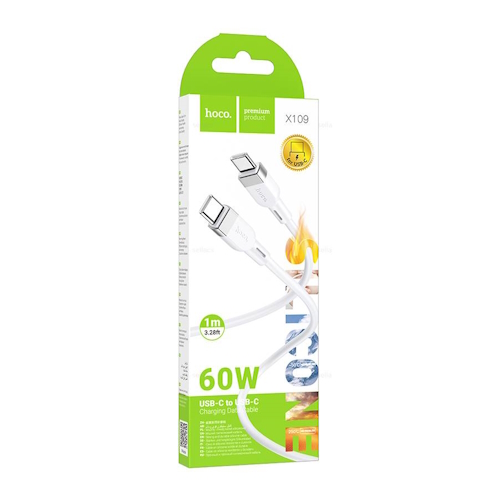 Кабель Type-C - Type-C НОСО X109, 1м, 3.0A, белый