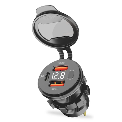 Разъем USB в авто (врезные) 12V-24V ES04 PD30W + 2 QC3.0 + Display