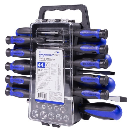 Отвертки в наборе, 44 предмета, головки, TORX, SL, PH, СR-V сталь Smartbuy PRO TOOLS (SBT-PRO-SCN-44)
