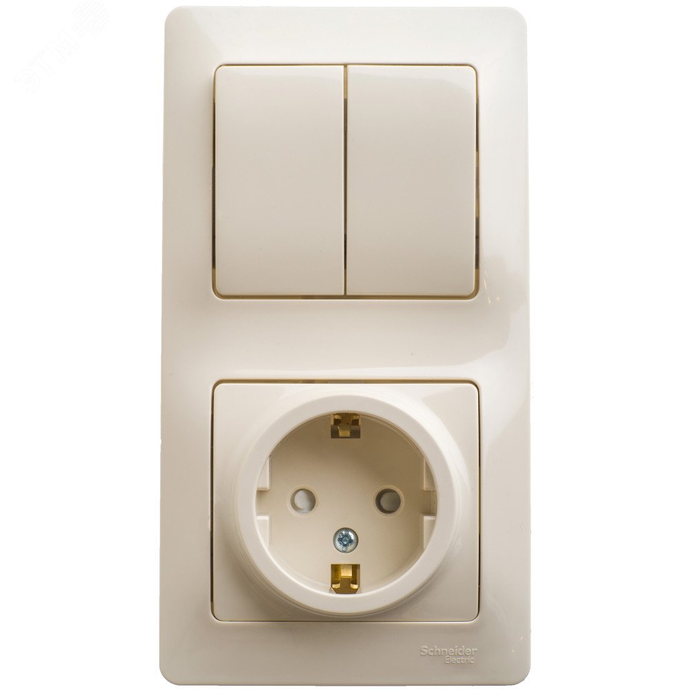 Блок вертикальный розетка+выключатель 2-клавишный бежевый С/У, С/З, З/Ш Systeme Electric GLOSSA