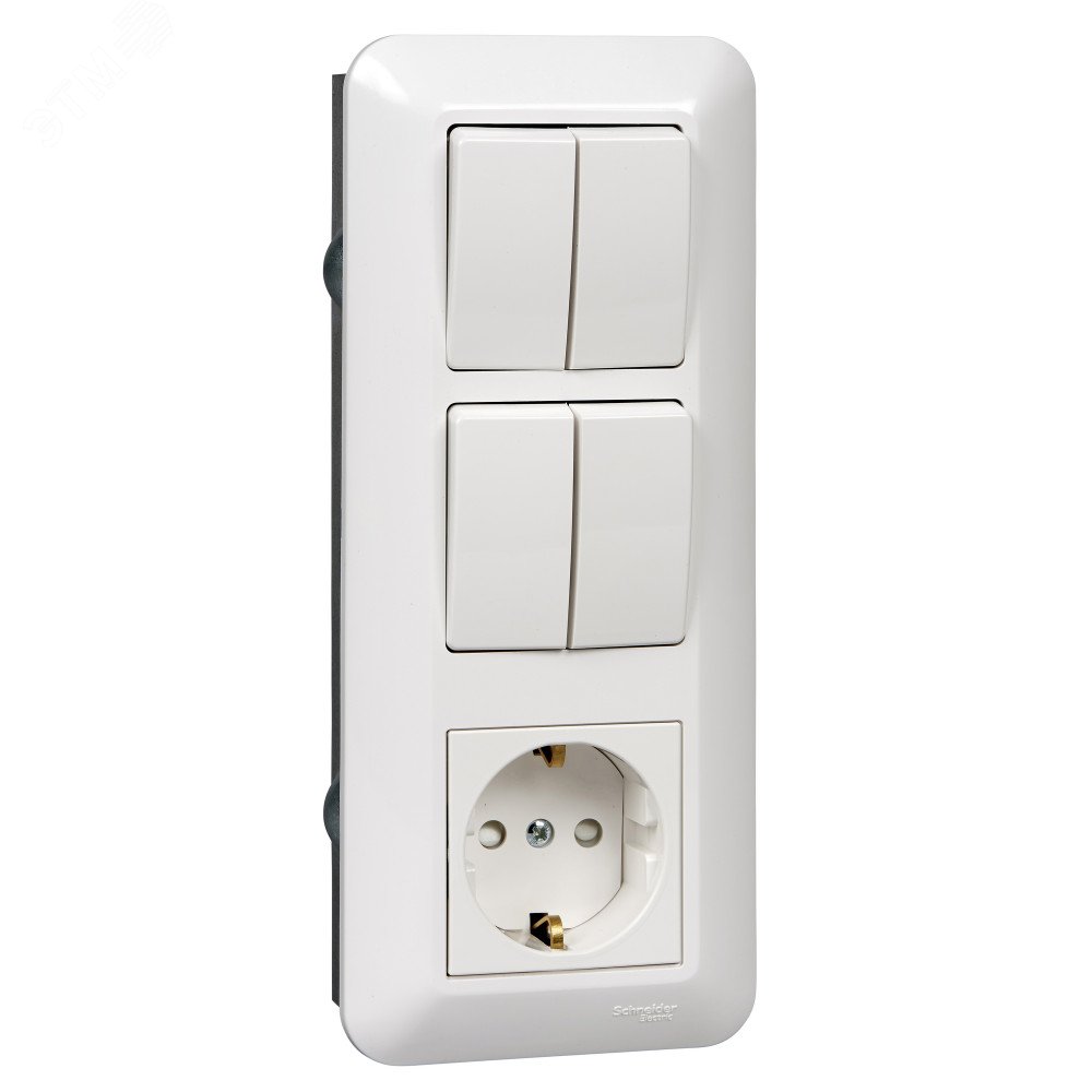 Блок вертикальный розетка+выключатель 2-клавишный+выключатель 2-клавишный белый С/У, С/З, З/Ш Systeme Electric ПРИМА