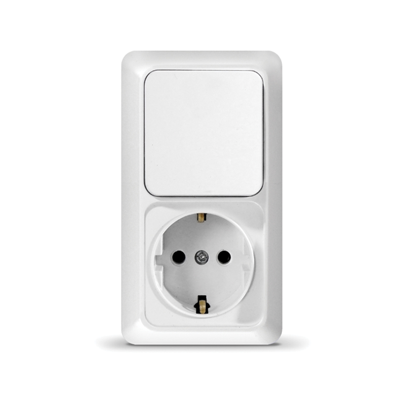 Блок вертикальный розетка+выключатель 1-клавишный белый о/у, с/з UNIVersal Олимп